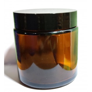 Topacio glass jar with black lid.