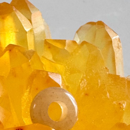 El donut de citrino en forma de círculo es uno de los símbolos más poderosos y universales, no tiene principio ni fin, lo que lo convierte en un símbolo de completitud, unidad y perfección, tiene un diámetro de 1 cm y su grosor es de 5mm.