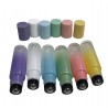 Frasco de cristal con roll-on bola metalica y tapon plastico imitacion madera